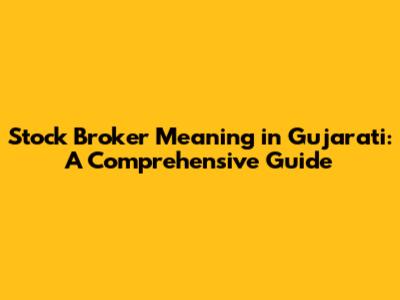 Stock Broker Meaning in Gujarati: A Comprehensive Guide
